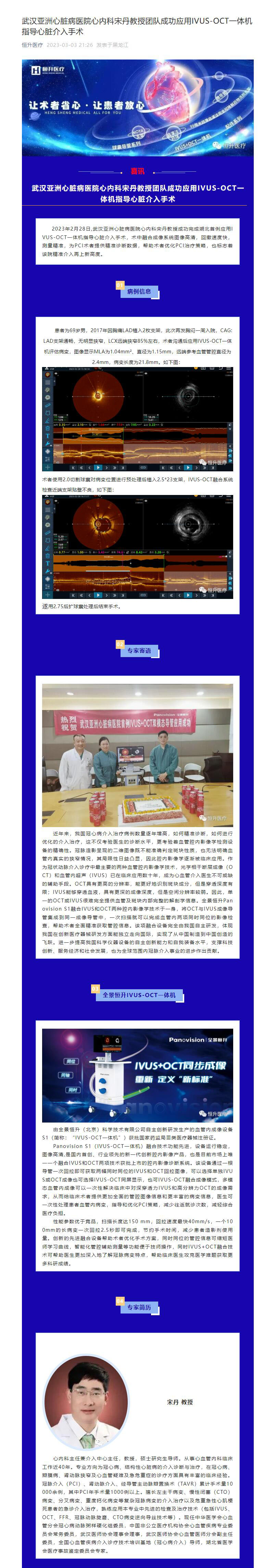 武汉亚洲心脏病医院心内科宋丹教授团队成功应用IVUS-OCT一体机指导心脏介入手术